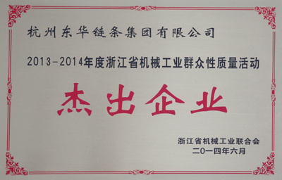65日至7日,由檢測公司組隊,代表集團公司參加2013年至2014年度浙江省機械工業(yè)優(yōu)秀質(zhì)量管理(QC)小組成果發(fā)表會。全省40余家企業(yè)的75QC成果發(fā)表。經(jīng)過兩天的發(fā)表與評比,最終,檢測公司的《降低客戶投訴損失額》和工程鏈事業(yè)部的《提升大規(guī)格鏈板沖裁質(zhì)量》分別獲得一等獎,工程鏈事業(yè)部的《減少81X鏈條不良率及提升產(chǎn)能》獲得二等獎。同時公司獲得了“2013-2014年度浙江省機械工業(yè)群眾性質(zhì)量活動杰出企業(yè)”稱號;副總經(jīng)理袁立華獲得“2013-2014年度浙江省機械工業(yè)群眾性質(zhì)量活動優(yōu)秀工作者”榮譽稱號。