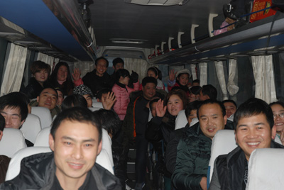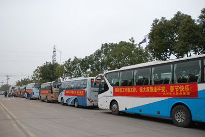 今年春節(jié),公司在安徽六安、江西廣豐、河南鄭州、湖北武漢、湖南長沙等員工較集中的方向設(shè)置了10條線路的包車,除利用其他方式回鄉(xiāng)的員工,共有365人乘坐包車。在傳動鏈?zhǔn)聵I(yè)部工作的江西員工袁根英說,以前每年回家都很難買到火車票,而且要到很遠的蕭山南站坐火車很不方便,自從近年公司組織包車送他們回家后,她說又方便又省心了,感覺很溫暖,企業(yè)為員工考慮的很周到,感激之情溢于言表。