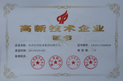 東華集團(tuán)與下屬自強(qiáng)公司于2011年9月分兩批先后根據(jù)《高新技術(shù)企業(yè)認(rèn)定管理辦法》和《高新技術(shù)企業(yè)認(rèn)定管理工作指引》有關(guān)規(guī)定,經(jīng)地方認(rèn)定工作辦公室初審和專家評審等程序,對企業(yè)的經(jīng)營業(yè)績、科研投入比例、高新產(chǎn)品、研發(fā)組織管理水平、核心自主知識產(chǎn)權(quán)、科技成果轉(zhuǎn)化能力及科技人員比例、財務(wù)成長性等指標(biāo)進(jìn)行了全面、嚴(yán)格的考察,東華集團(tuán)和自強(qiáng)公司各項業(yè)績指標(biāo)均達(dá)到國家級“高新技術(shù)企業(yè)”的要求,順利通過審核。2012年4月份正式獲得由浙江省科學(xué)技術(shù)廳、浙江省財政廳、浙江省國家稅務(wù)局、浙江省地方稅務(wù)局聯(lián)合頒發(fā)的國家級“高新技術(shù)企業(yè)”認(rèn)定證書,有效期三年。