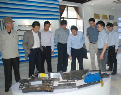 9月23日,浙江省科技咨詢中心副主任陳偉、杭州市科技咨詢中心、杭州市院士專家服務(wù)中心主任吳挺等省市區(qū)科學(xué)技術(shù)協(xié)會(huì)領(lǐng)導(dǎo)陪同寧夏回族自治區(qū)科學(xué)技術(shù)協(xié)會(huì)副主席王冰等領(lǐng)導(dǎo)到東華集團(tuán)就院士工作建設(shè)情況及取得的成效進(jìn)行調(diào)研。圖為副總經(jīng)理袁立華、技術(shù)中心顧問陳金賢陪同陳主任一行參觀樣品。