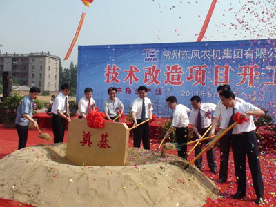5月20日上午,常州東風農機集團有限公司 “月產6500臺輪拖零部件能力技改”等3個技改項目舉行奠基典禮,拉開了東風農機“十二五”新一輪大發展的序幕。鐘樓區委書記徐偉南、區長潘冬鈴、東風農機董事長宣碧華等領導出席了奠基典禮。