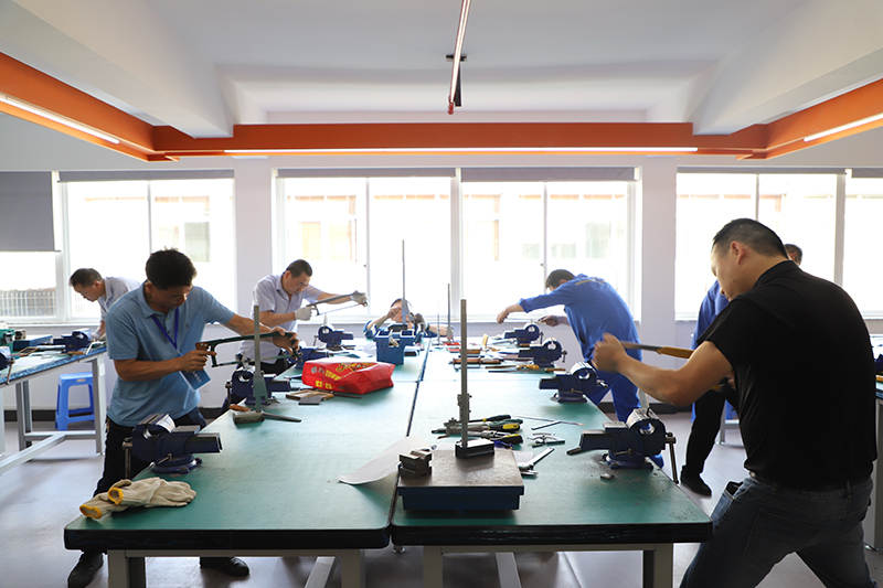 本次鉗工技能比武共有來自春風動力、老板電器、東華鏈條、浙江健拓等10家企業的53名選手參加,考慮到公平公正,選手分為“普通組”和“高級組”進行比賽,共進行三場比賽。比賽中,參賽選手認真識圖、精準劃線,運用鋸、鉆、挫等技藝,以最佳水平將臺鉗上的毛坯件逐漸變成符合標準的成品。