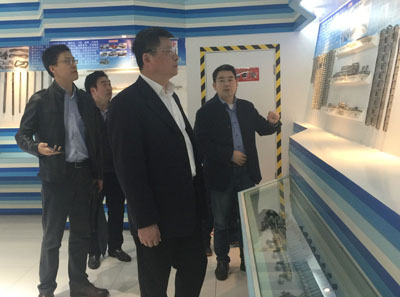 袁副總首先陪同蔡副司長一行參觀了公司新區樣品展廳,向蔡副司長一行介紹了世界鏈條發展史、中國鏈條發展史和東華鏈條發展史,同時介紹了公司生產的傳動鏈、工程鏈、扶梯鏈、汽車鏈、農機鏈等精品鏈條,蔡副司長表示通過參觀鏈條精品,對東華集團的全系列鏈條的研發、制造能力表示肯定。