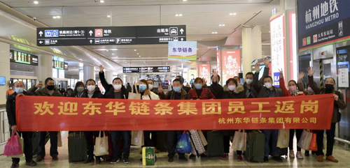 當(dāng)?shù)谝慌俗啥嫉胶贾菝赓M(fèi)專列的18名東華員工有序走出杭州東站時(shí),迎接他們的是區(qū)政府和公司領(lǐng)導(dǎo),還有區(qū)政府贈(zèng)送他們的口罩、牛奶、面包等愛(ài)心大禮包,公司還派專人專車護(hù)送他們回到家中,受到廣大員工的好評(píng)。