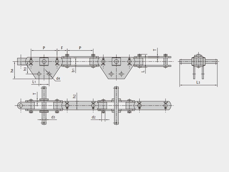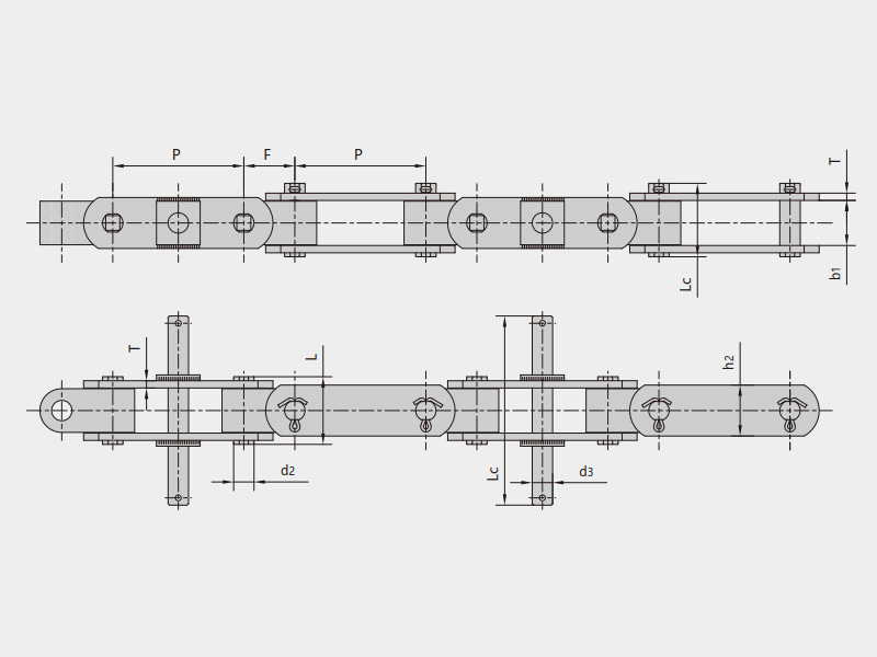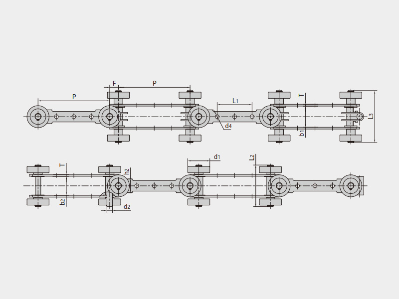 | A型雙鉸接輸送鏈,用于方形軌道 | S型雙鉸接輸送鏈,用于方形軌道 | Q型雙鉸接輸送鏈,用于方形輕型軌道 |